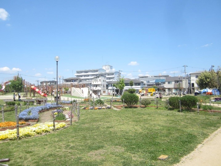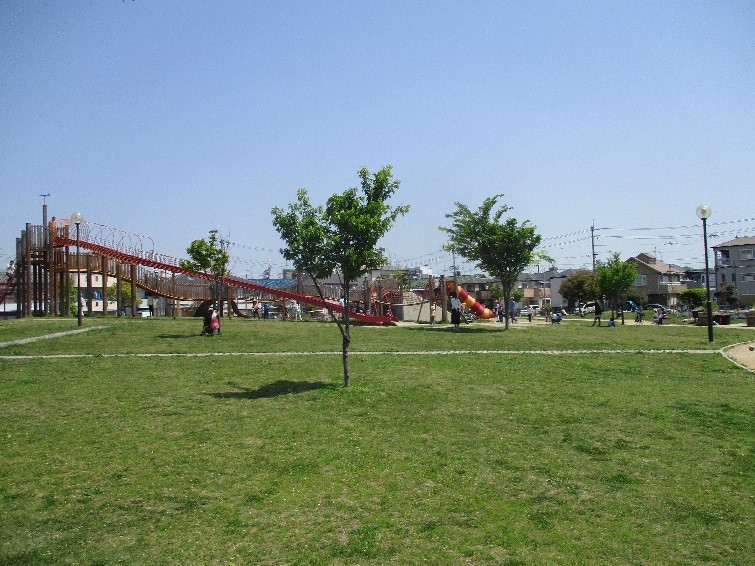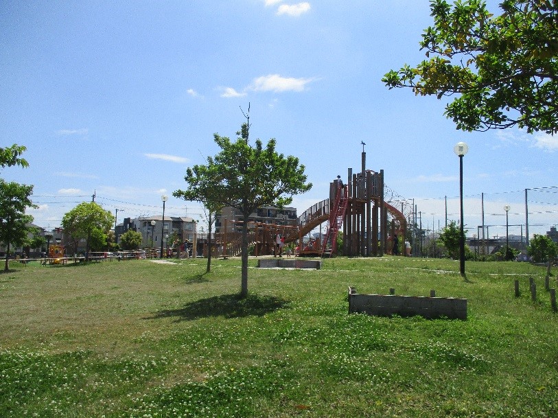 | 遊び | 砂場大型複合遊具ローラーすべり台芝生広場 |
