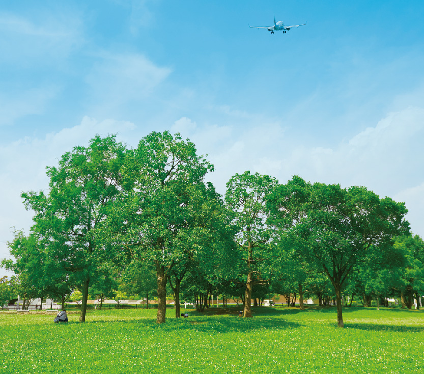 大阪国際空港の飛行機の航路直下に位置し、着陸前の迫力のある飛行機を見ることができます。